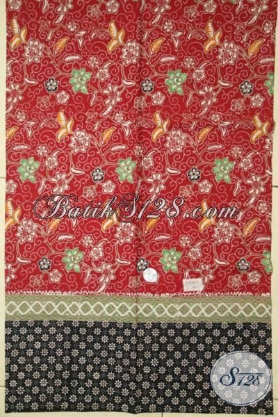 Jual Batik Terbaik Buatan Solo, Batik Cap Tulis Bahan Pakaian Modern Dengan Motif Trendy Dan Warna Merah Yang Mewah [K1868CT-200x110cm]