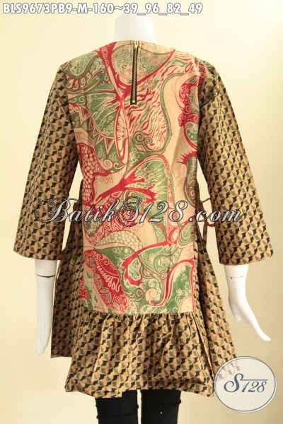 Jual Blouse Batik Modern Model Tanpa Krah, Pakaian Batik Wanita 2 Motif Pakai Resleting Belakang Lengan 7/8 Serta Bertali Di Bagian Pinggang Kanan Kiri, Cocok Untuk Kerja Kantoran [BLS9673PB-M]