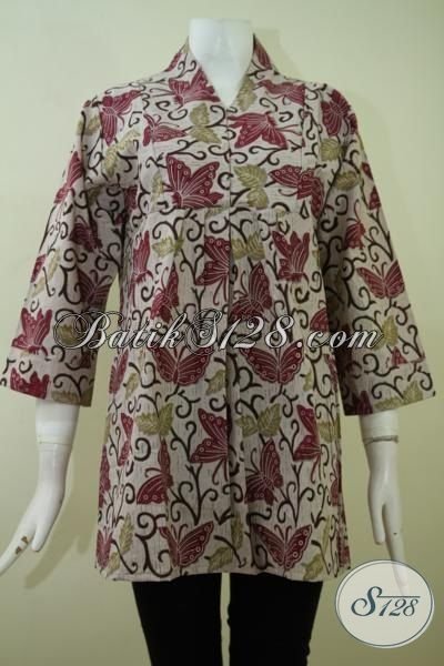 Jual Blus Batik Buatan Solo Indonesia, Pakaian Batik Kerja Masa Kini Motif Kupu-Kupu Dengan Desain Keren Untuk Tampil Lebih Modis [BLS2381P-M]