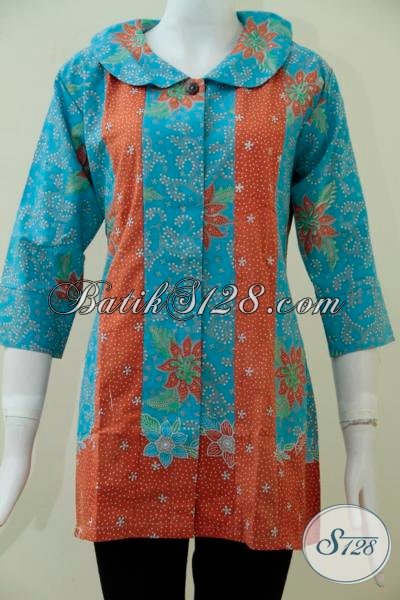 Jual Blus Batik Cantik Desain Menarik Cocok Untuk Perempuan Muda, Busana Kerja Trendy Model Mewah Harga Murah [BLS1599P-L]