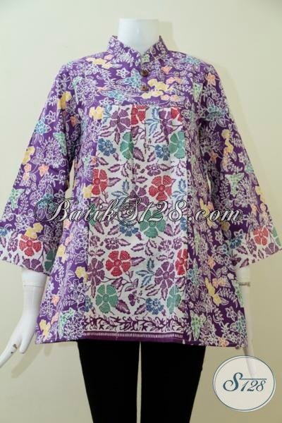 Jual Blus Batik Cap Warna Ungu Bermotif Bagus, Busana Batik Modern Trend Masa Kini Untuk Kerja Dan Kondangan [BLS1942C-M]