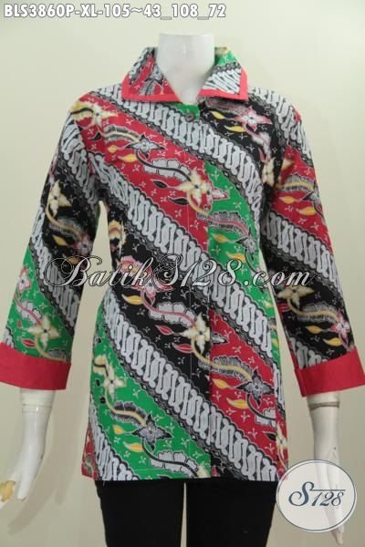 Jual Blus Batik Elegan Desain Mewah Motif Parang Bunga Asli Buatan Solo, Produk Busana Batik Wanita Masa Kini Model Plisir Proses Print Harga Murmer [BLS3860P-XL]