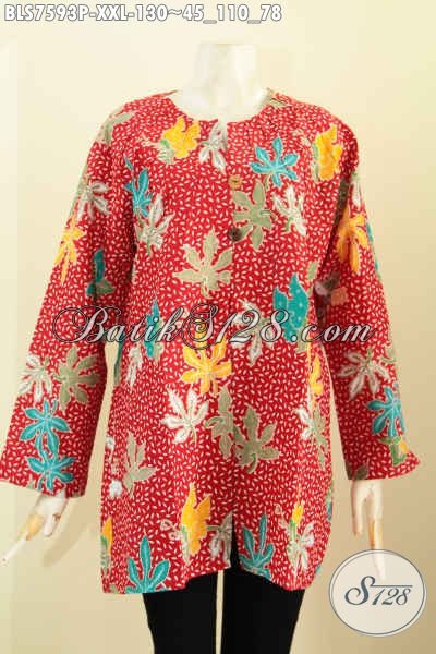 Jual Blus Batik Jumbo Warna Merah, Baju Batik Kerja Dan Pesta Kwalitas Bagus Proses Printing, Wanita Gemuk Tampil Modis [BLS7593P-XXL]