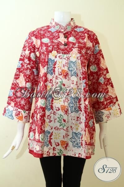 Jual Blus Batik Merah Terbaru Dengan Desain Serta Motif Paling Laris Saat Ini, Busan Batik Cewek Kerja Kantoran Tampil Modis [BLS2539C-L]