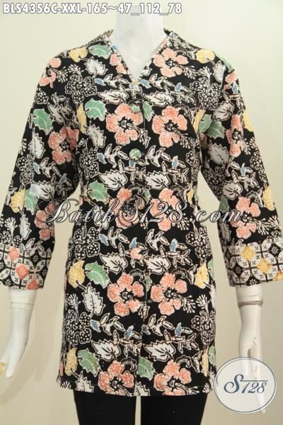 Jual Blus Plisir Trendy Dengan Kerah Polos Motif Istimewa, Baju Batik Wanita Gemuk Buata Tampil Trendy Modis Dan Mempesona, Proses Cap [BLS4356C-XXL]
