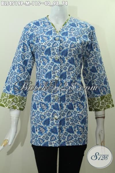Jual Busana Batik Blus Model Terkini Plisir Kombinasi, Baju Batik Kera V Motif Trendy Proses Printing Untuk Tampil Mewah Dengan Harga Murah Meriah [BLS4519P-M]