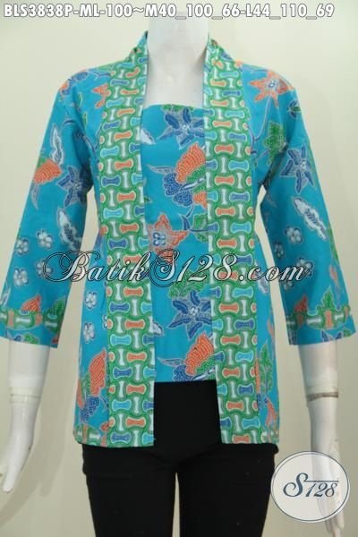 Jual Busana Batik Cewek Model Kutubaru Modis Dan Elegan, Pakaian Batik Jawa Masa Kini Proses Printing Warna Biru Motif Bagus Membuat Wanita Terlihat Modis Dan Rapi [BLS3838P-M , L]