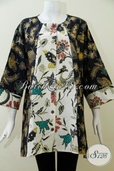 Jual Busana Batik Dua Warna Trend Fashion Batik Wanita Terkini, Blus Batik Klasik Modern Modis Serta Fashionable [BLS1975BT-XXXL]