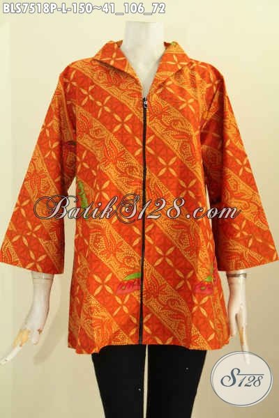 Jual Busana Batik Elegan, Blus Resti Batik Printing Motif Bagus Kwalitas Halus, Pakaian Batik Kerah Langsung Dengan Resleting Depan Harga 150K [BLS7518P-L]