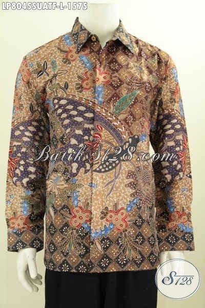 Jual Busana Batik Harga Di Atas 1 Jutaan, Kemeja Batik Pria Premium Bahan Sutra ATBM Motif Proses Tulis Lengan Panjang Pake Furing [LP8045SUATF-L]