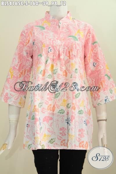 Jual Busana Batik Kerah Shanghai Warna Pastel Desain Istimewa Motif Bagus Sekali, Baju Kerja Batik Perempuan Muda Tampil Gaya Mempesona [BLS4165C-S]