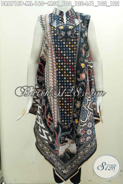 Jual Busana Batik Online Untuk Wanita Tampil Bergaya, Dress Batik Keren Model A Simetris Motif Mewa Printing Pake Resleting Belakang 160 Ribu Saja [DR6715P-M , L]