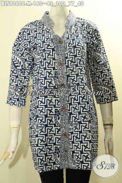 Jual Busana Batik Solo Modis Lengan 3/4, Pakaian Batik Modern Motif Bagus Cocok Buat Seragam Kerja Atau Jalan-Jalan Proses Cap, Tampil Kece Badai [BLS9060C-M]