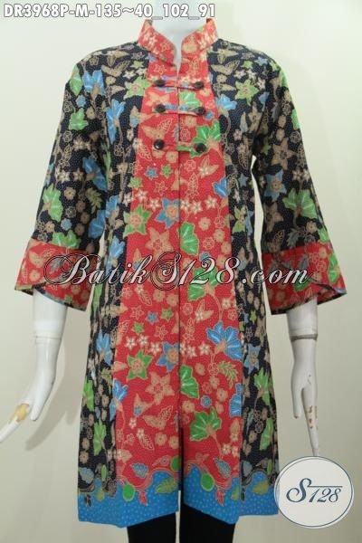Jual Busana Batik Trendy Buatan Solo Model Kerah Shanghai, Dress Batik Jawa Proses Printing Kwalitas Halus Nyaman Di Pakai Harga Murmer [DR3968P-M]