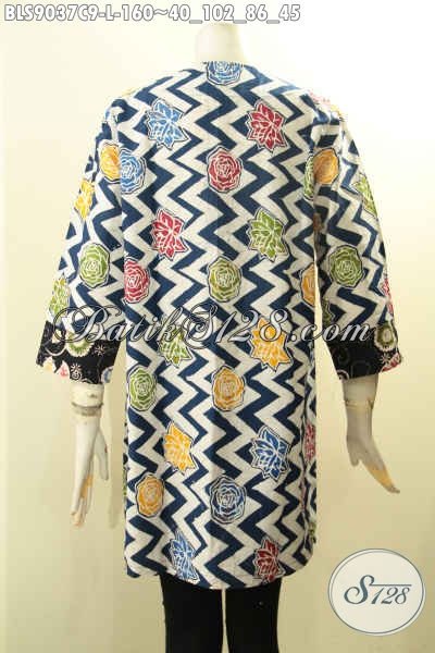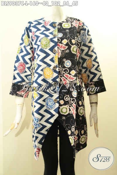 Jual Busana Batik Wanita Model Terbaru, Blouse Batik Solo Asli Motif Unik Dan Trendy Proses Cap Cocok Buat Ngantor Dan Jalan-Jalan, Bahan Halus Model Kancing Depan Lengan Panjang 7/8 [BLS9037C-L]