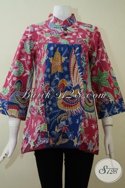 Jual Busana Batik Wanita Model Yang Paling Banya Di Cari, Blus Batik Warna Kombinasi Merah Jambu Dan Biru Dengan Motif Keren Meningkatkan Kwalitas Penampilan Perempuan Modern [BLS2184P-M]