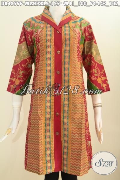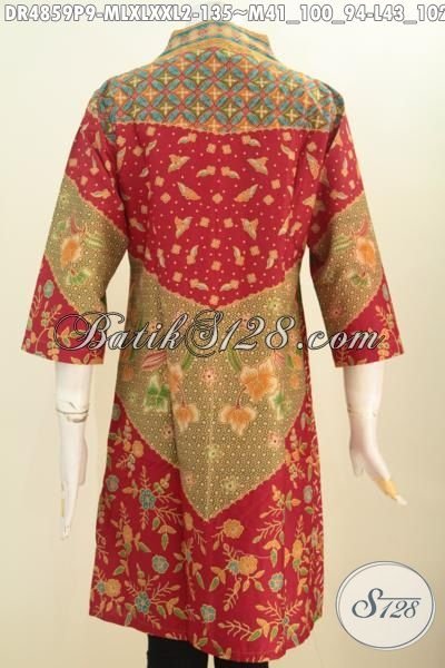 Jual Busana Batik Wanita Terkini, Produk Pakaian Batik Modis Berkelas Buatan Solo Asli, Dress Batik Elegan Motif Klasik Bahan Adem Proses Printing Model Kerah Langsung Trend Mode 2016 [DR4859P-XXL]