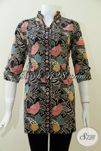 Jual Busana Blus Batik Motif Bunga-Bunga Unik Dan Menarik, Baju Batik Cap Tulis Kwalitas Bagus Dan Halus [BLS1977CTF-M]