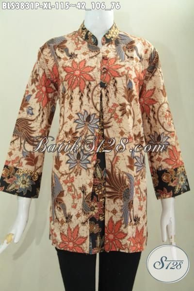 Jual Busana Blus Batik Size XL Model Pias Proses Print, Pakaian Batik Jawa Etnik Spesial Wanita Karir Tampil Berkelas Dan Memikat [BLS3831P-XL]