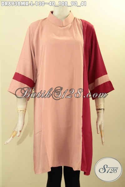 Jual Busana Dress Dengan Kombinasi Warna Nan Trendy, Baju Kerja Wanita Mudan Dan Dewasa Lengan 7/8 Kerah Shanghai Dengan Resleting Belakang, Bahan Halus Kain Polos Maxmara Harga 130K [DR8938MX-L]