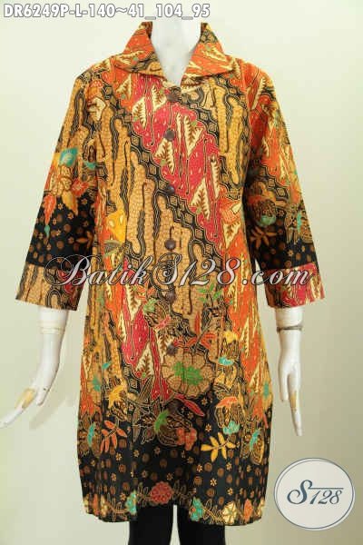 Jual Dress Batik Kerah, Pakaian Batik Modern Lengan Desain Opneisel Berbahan Halus Motif Klasik Printing Harga 140K [DR6249P-L]