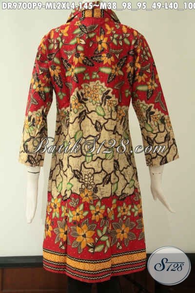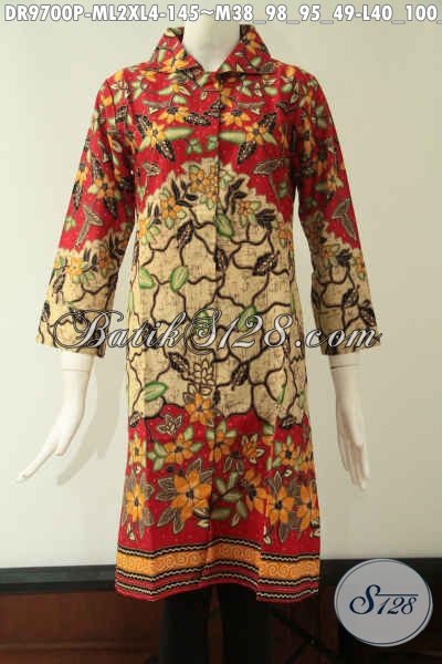 Jual Dress Batik Modern Untuk Wanita Tampil Cantik Dan Bergaya, Hadir Dengan Model Krah Lengan 7/8 Serta D Lengkapi Kancing Depan Sampai Bawah, Pas Untuk Kerja Maupun Acara Resmi [DR9700P-XL]
