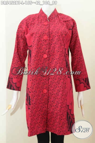 Jual Dress Batik Monokrom Size L, Baju Batik Elegan Warna Merah Hitam Proses Kombinasi Tulis Model Kerah Shanghai Kancing Besar Harga 155 Ribu [DR5452BT-L]
