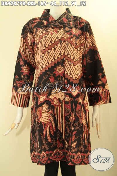 Jual Dress Batik Solo Istimewa Lengan 7/8, Pakaian Batik Wanita Untuk Wanita Gemuk Model Kerah Miring Kancing Depan Motif Elegan, Pilihan Terbaik Buat Tampil Cantik Dan Kekinian [DR9287PB-XXL]