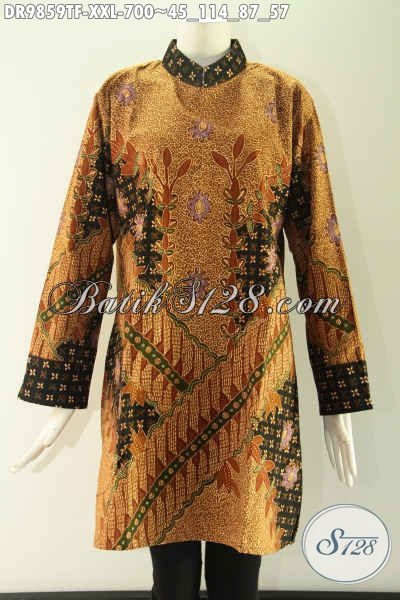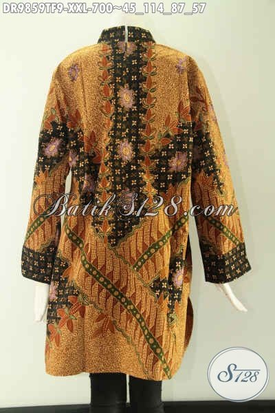 Jual Dress Batik Spesial Untuk Wanita Berbadan Gemuk, Baju Batik Ukuran XXL Motif Elegan Proses Tulis Asli Desain Terbaru Daleman Full Furing, Penampilan Lebih Berkelas Dan Mewah [DR9859TF-XXL]