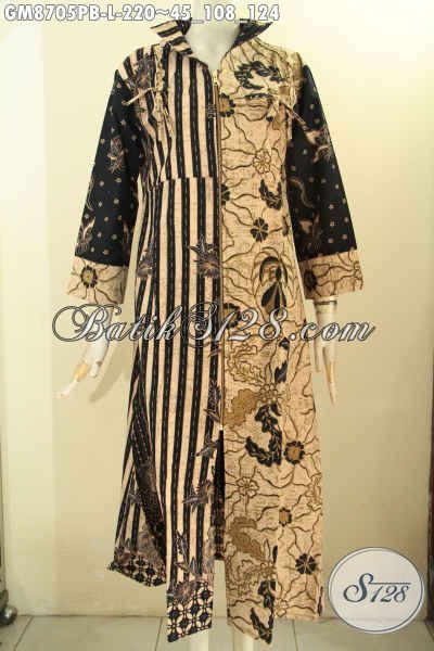 Jual Gamis Batik Resleting Depan, Pakaian Batik Wanita Untuk Tampil Anggun Dan Cantik, Bahan Adem Motif Kombinasi Proses Printing Cabut Hanya 200 Ribuan [GM8705PB-L]