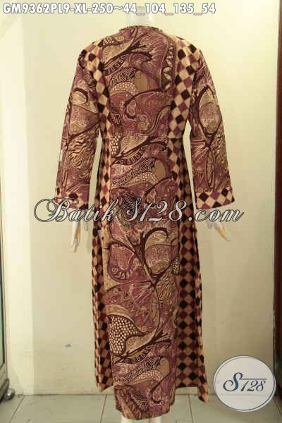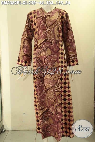Jual Gamis Batik Wanita Dewasa, Busana Batik Kekinian Model Resleting Depan Kwalitas Bagus Bahan Halus Kombinasi 2 Motif, Bikin Penampilan Cantik Menawan [GM9362PL-XL]