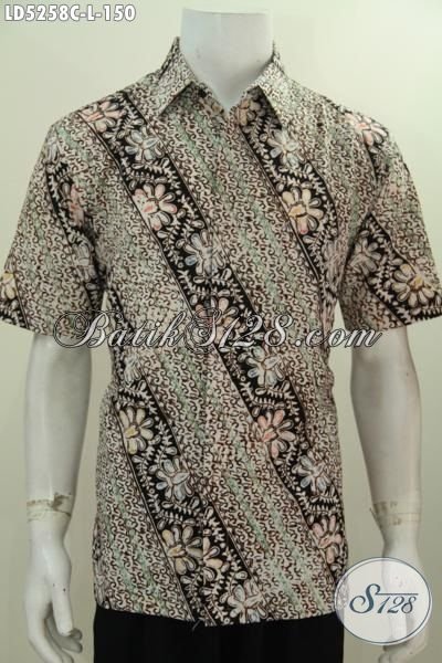 Jual Hem Batik Bagus Berbahan Halus Motif Unik Proses Cap, Busana Batik Lengan Pendek Seragam Kerja Lelaki Karir Tampil Lebih Berkelas [LD5258C-L]