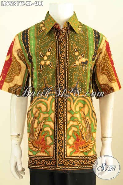 Jual Hem Batik Istimewa Size XL, Baju Batik Klasik Sinaran Untuk Pria Dewasa Model Lengan Pendek Full Furing, Penampilan Lebih Mewah Berkelas [LD9281TF-XL]