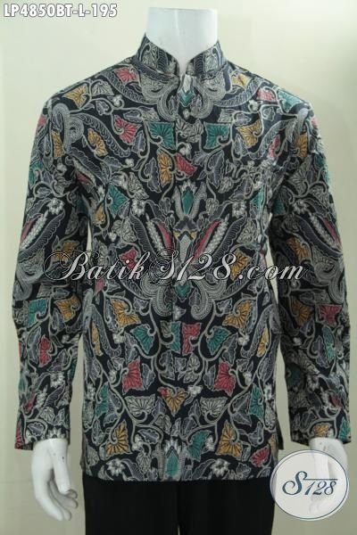 Jual Hem Batik Koko Lengan Panjang Proses Kombinasi Tulis, Baju Batik Kerah Shanghai Halus Motif Klasik Bisa Buat Ke Kantor Dan Acara Formal [LP4850BT-L]