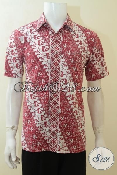Jual Hem Batik Klasik Warna Modern, Batik Merah Kombinasi Putih Cowok Tampil Modis Dan Bergaya [LD4087C-M]