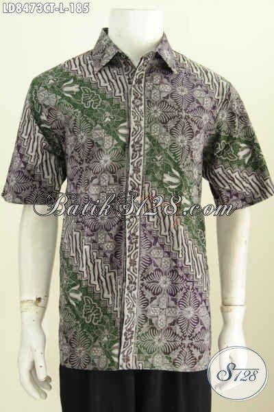 Jual Hem Batik Online, Contoh Baju Batik Pria Terbaru, Busana Batik Lengan Pendek Motif Keren Proses Cap Tulis Hanya 100 Ribuan [LD8473CT-L]