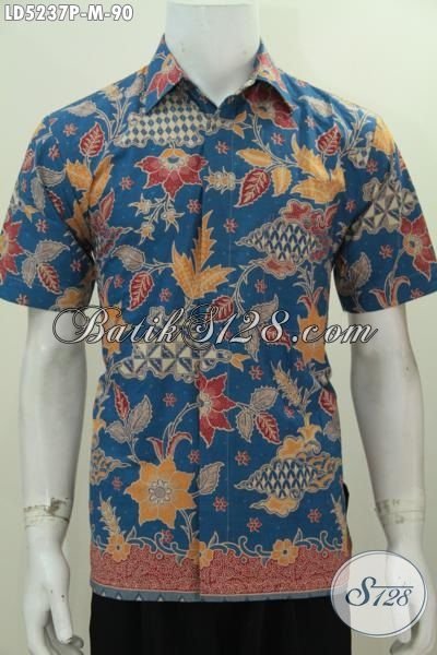 Jual Hem Batik Printing Motif Bagus Berbahan Adem, Baju Batik Biru Lengan Pendek Istimewa Untuk Cowok Makin Stylish [LD5237P-M]
