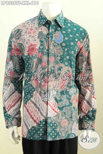 Jual Hem Batik Solo Terkini, Hadir Dengan Warna Hijau Lengan Panjang Full Furing Motif Bagus Proses Tulis Harga 610K [LP9538TF-XXL]