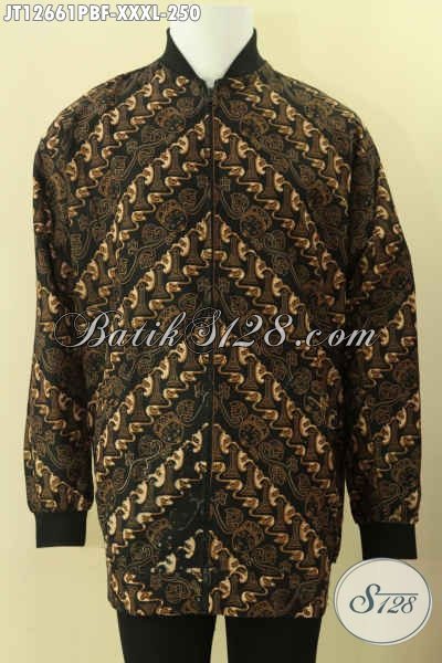 Jual Jaket Batik Solo Nan Istimewa, Jaket Batik Kekinian Kwalitas Premium Motif Elegan Bahan Halus Daleman Full Furing Dormeuil Spesial Untuk Lelaki Gemuk Sekali [JT12661PBF-XXXL]