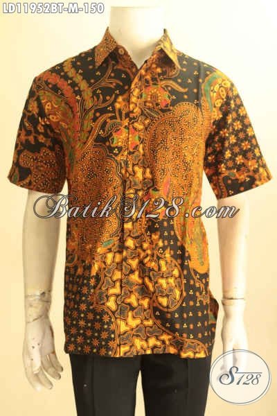 Jual Kemeja Batik Desain Terbaru Motif Tren Masa Kini, Pakaian Batik Solo Lengan Pendek Proses Kombinasi Tulis Yang Membuat Pria Terlihat Gagah Dan Tampan [LD11952BT-M]
