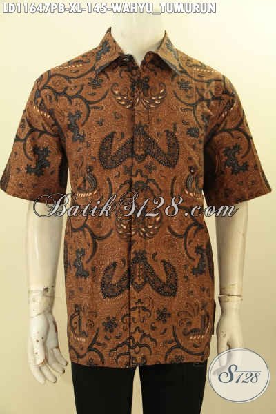 Jual Kemeja Batik Elegan Lengan Pendek Motif Klasik Wahyu Tumurun, Busana Batik Printing Cabut Buatan Solo Asli, Menunjang Penampilan Lebih Gagah Menawan [LD11647PB-XL]