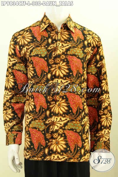 Jual Kemeja Batik Full Furing Lengan Panjang Berkelas Bahan Adem Motif Klasik Daun Talas, Pakaian Batik Cap Tulis Istimewa Cocok Untuk Kerja Dan Rapat [LP9834CTF-L]