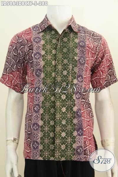 Jual Kemeja Batik Gaul Anak Muda, Hem Batik Pria Masa Kini Bahan Kain Doby Kwalitas Halus Motif Kombinasi Proses Cap Tulis Model Lengan Pendek Full Furing [LD5863DBCTF-S]