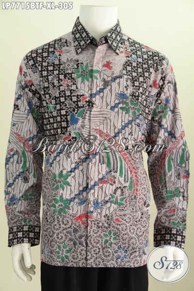 Jual Kemeja Batik Halus Lengan Panjang Berkelas, Produk Baju Batik Terkini Buatan Solo Kwalitas Mewah Harga Terjangkau [LP7715BTF-XL]
