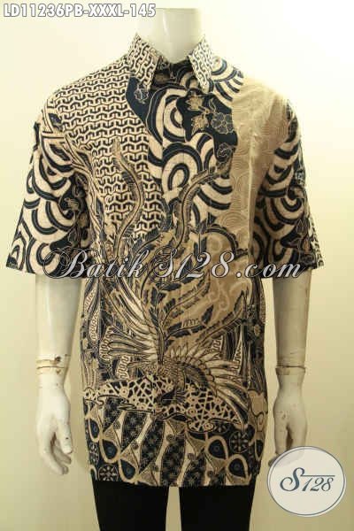 Jual Kemeja Batik Jumbo Lengan Pendek, Pakaian Batik Big Size Halus Motif Keren Dan Berkelas Proses Printing Cabut, Pria Gemuk Tampil Gagah Dan Tampan [LD11236PB-XXXL]