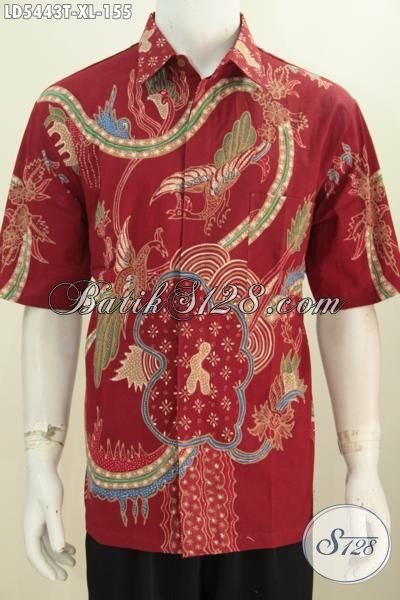 Jual Kemeja Batik Lengan Pendek Modis Warna Merah, Baju Kerja Batik Halus Proses Tulis Buatan Solo Hadir Dengan Harga Yang Makin Terjangkau [LD5443T-XL]