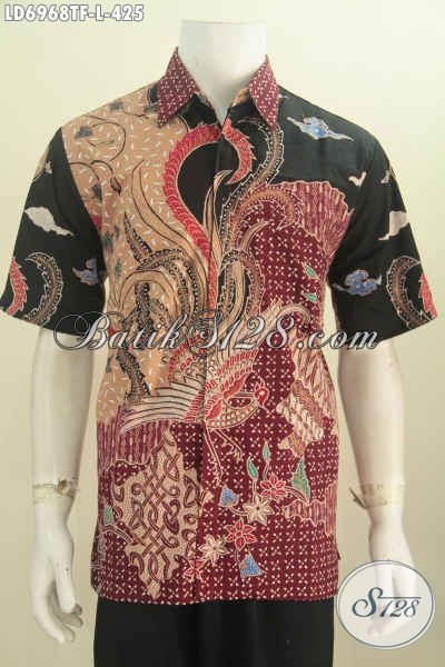 Jual Kemeja Batik Lengan Pendek Motif Bagus Proses Tulis, Baju Batik Cowok Size L Daleman Full Furing Harga 425K Untuk Tampil Berwibawa [LD6968TF-L]