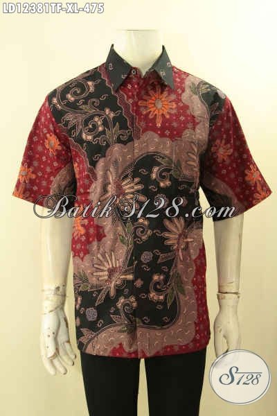 Jual Kemeja Batik Mewah Terbaik Lengan Pendek Pakai Furing, Busana Batik Tulis Lasem Motif Elegan, Bikin Penampilan Lebih Istimewa [LD12381TF-XL]