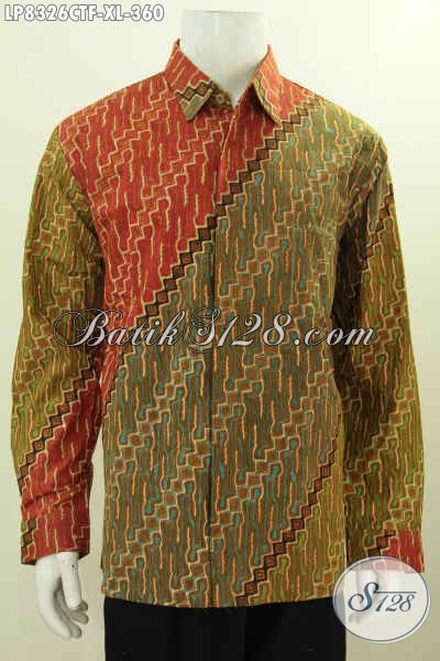 Jual Kemeja Batik Motif Parang, Pakaian Batik Solo Halus Full Furing Lengan Panjang Proses Cap Tulis Untuk Penampilan Lebih Istimewa [LP8326CTF-XL]