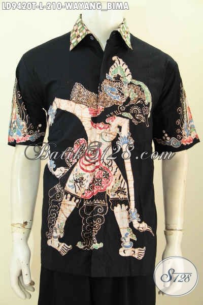 Jual Kemeja Batik Online Jawa Tengah, Pakaian Batik Halus Lengan Pendek Keren Masa Kini Motif Wayang Bima Bahan Adem Nyaman Di Pakai [LD9420T-L]